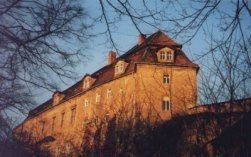 Im oberen Geschoß des östlichen Teils des Wohnflügels ist ein großer Saal mit klassizistischer Ausstattung, aus dem Ende des 18. Jh., bemerkenswert. Er wurde heute von der katholischen Kirche genutzt. dieser Saal geht auf einen Entwurf von Friedrich August Krubsacius zurück und zeigt folgende gute klassizistische Stuckreliefs: Kaminstück nach einem Entwurf von Adam Friedrich Oeser, Philemon und Baucis bedienen den verkleideten Jupiter und Merkur, ausgeführt von dem Bildhauer Christian Unger; die Lebensalter (Kindheit, Jünglingsalter, Männliches Alter, Alter) ebenfalls von dem Bildhauer Unger; die Gegenüberstellung der Tages- und Jahreszeiten (Morgen und Frühling, Mittag und Sommer, Abend und Herbst, Nacht und Winter) sowie Relief-Medaillons mit den Köpfen von Solon (Repräsentant der griechischen Gesetzgebung), Thucydides (Geschichte), Homer (Dichtkunst) und Demosthenes (Beredsamkeit). Im Plafond des Saales befand sich ursprünglich ein Gemälde, Saturn befiehlt der Glückseligkeit, von Adam Friedrich Oeser. Im Zuge der Romantik wurde an der Südspitze des Haupttraktes, nach der Mulde zu, eine Aussichtsplattform, der sogenannten Altan, mit Zinnenkranz vorgelagert. Etwas unterhalb davon entstand die Warte, ein Rundturm mit Kuppel, und darüber ebenfalls eine Aussichtsplattform mit Zinnenkranz. |