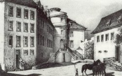 Im oberen Geschoß des östlichen Teils des Wohnflügels ist ein großer Saal mit klassizistischer Ausstattung, aus dem Ende des 18. Jh., bemerkenswert. Er wurde heute von der katholischen Kirche genutzt. dieser Saal geht auf einen Entwurf von Friedrich August Krubsacius zurück und zeigt folgende gute klassizistische Stuckreliefs: Kaminstück nach einem Entwurf von Adam Friedrich Oeser, Philemon und Baucis bedienen den verkleideten Jupiter und Merkur, ausgeführt von dem Bildhauer Christian Unger; die Lebensalter (Kindheit, Jünglingsalter, Männliches Alter, Alter) ebenfalls von dem Bildhauer Unger; die Gegenüberstellung der Tages- und Jahreszeiten (Morgen und Frühling, Mittag und Sommer, Abend und Herbst, Nacht und Winter) sowie Relief-Medaillons mit den Köpfen von Solon (Repräsentant der griechischen Gesetzgebung), Thucydides (Geschichte), Homer (Dichtkunst) und Demosthenes (Beredsamkeit). Im Plafond des Saales befand sich ursprünglich ein Gemälde, Saturn befiehlt der Glückseligkeit, von Adam Friedrich Oeser. Im Zuge der Romantik wurde an der Südspitze des Haupttraktes, nach der Mulde zu, eine Aussichtsplattform, der sogenannten Altan, mit Zinnenkranz vorgelagert. Etwas unterhalb davon entstand die Warte, ein Rundturm mit Kuppel, und darüber ebenfalls eine Aussichtsplattform mit Zinnenkranz. |